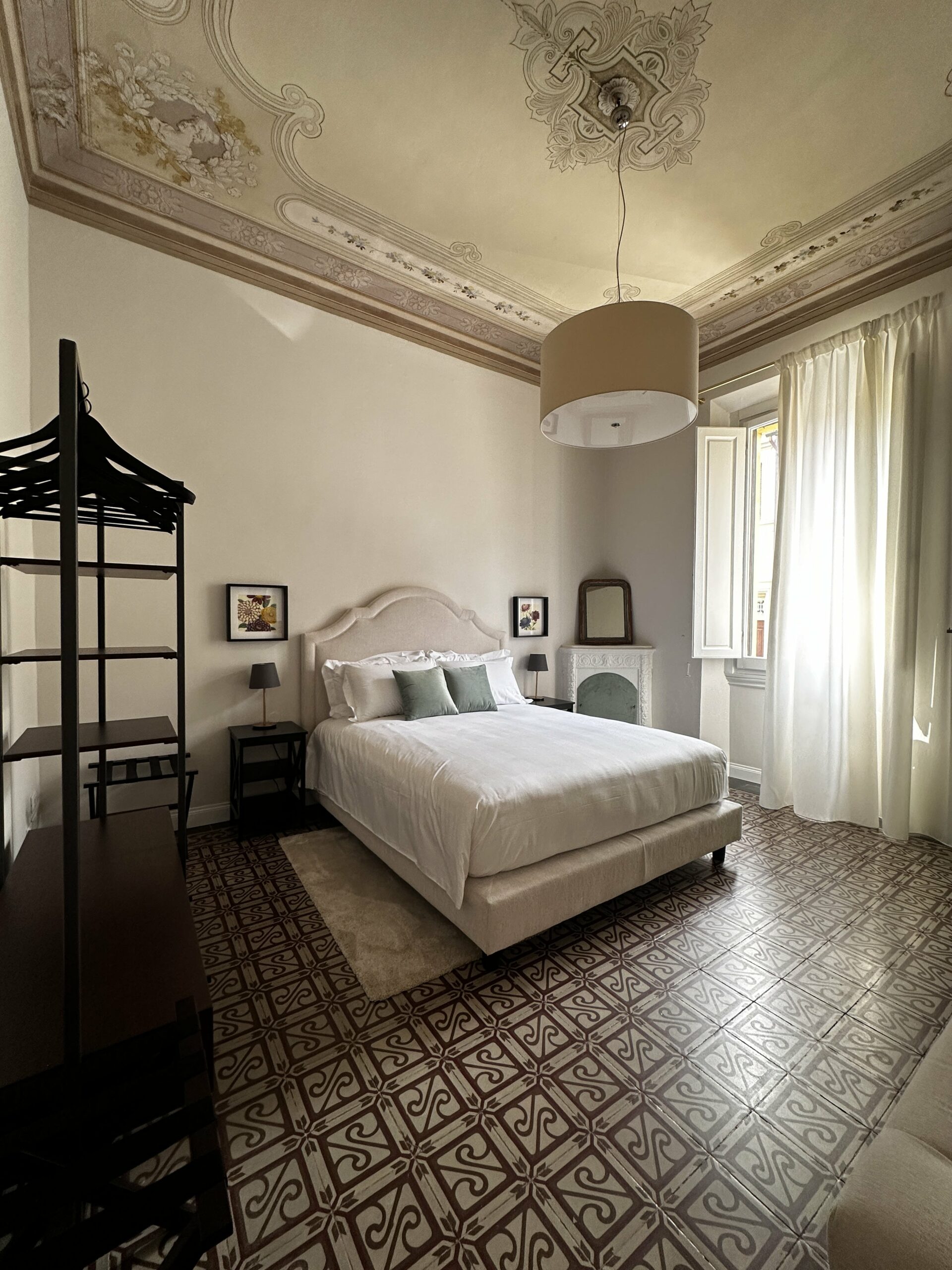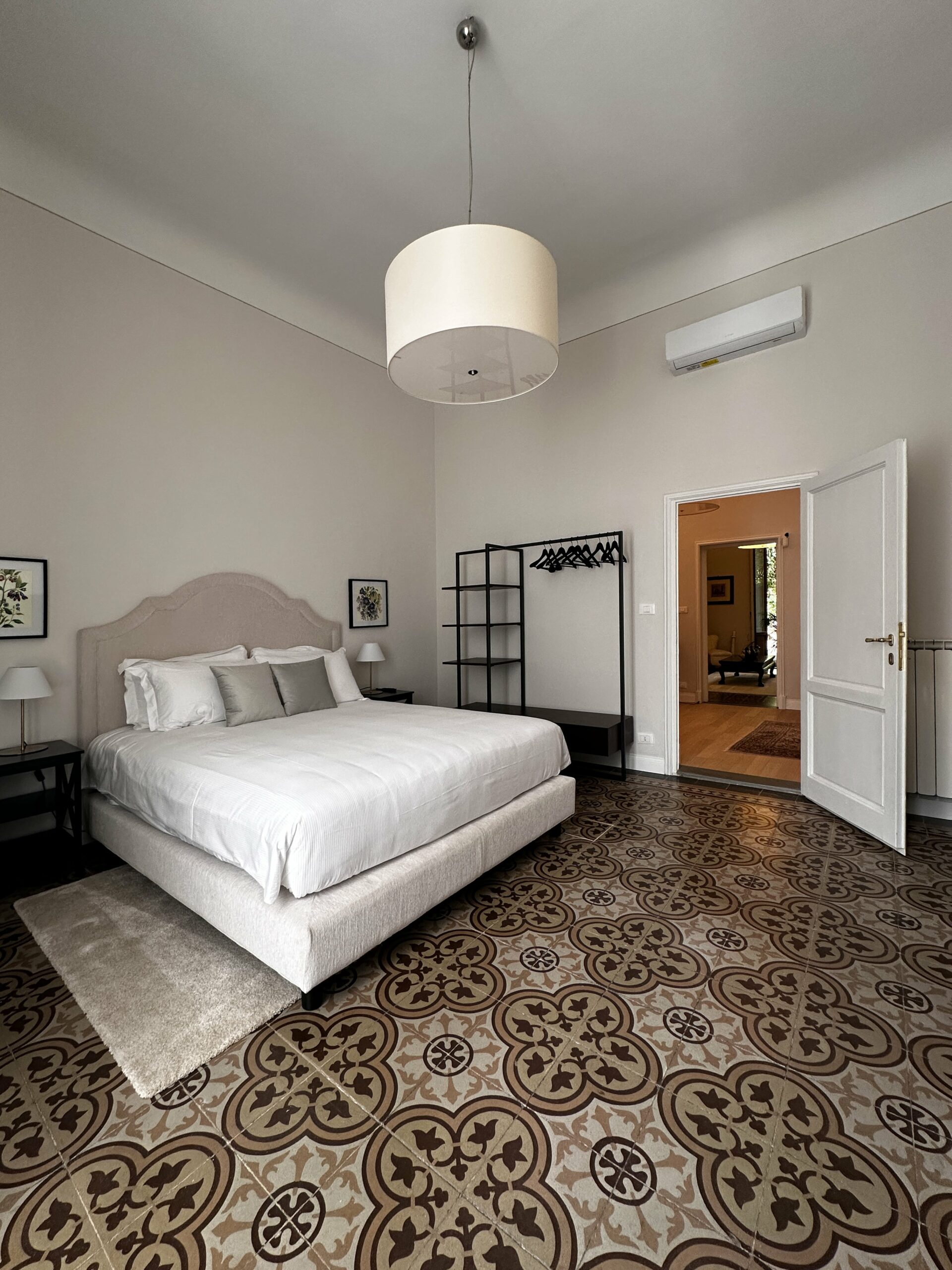 Quando siamo intervenuti su questo appartamento a Firenze, la sfida principale era rinnovare gli spazi senza perdere il fascino storico della casa, trasformandola in una location perfetta per Airbnb. L’appartamento, con un grande giardino esterno, offriva molte potenzialità: volevamo creare un ambiente accogliente, elegante e capace di far vivere agli ospiti un’esperienza autentica del passato, ma con tutti i comfort contemporanei.