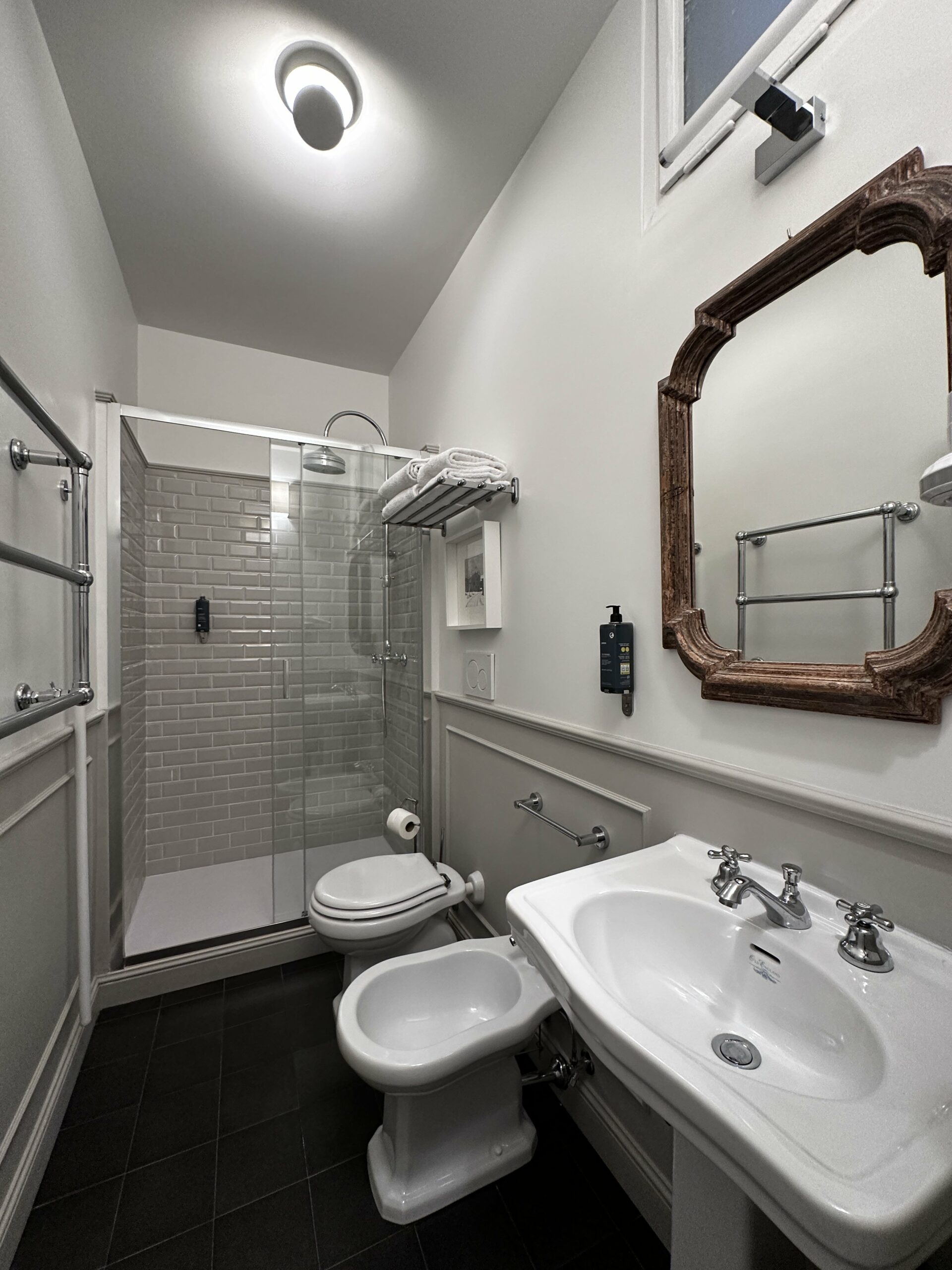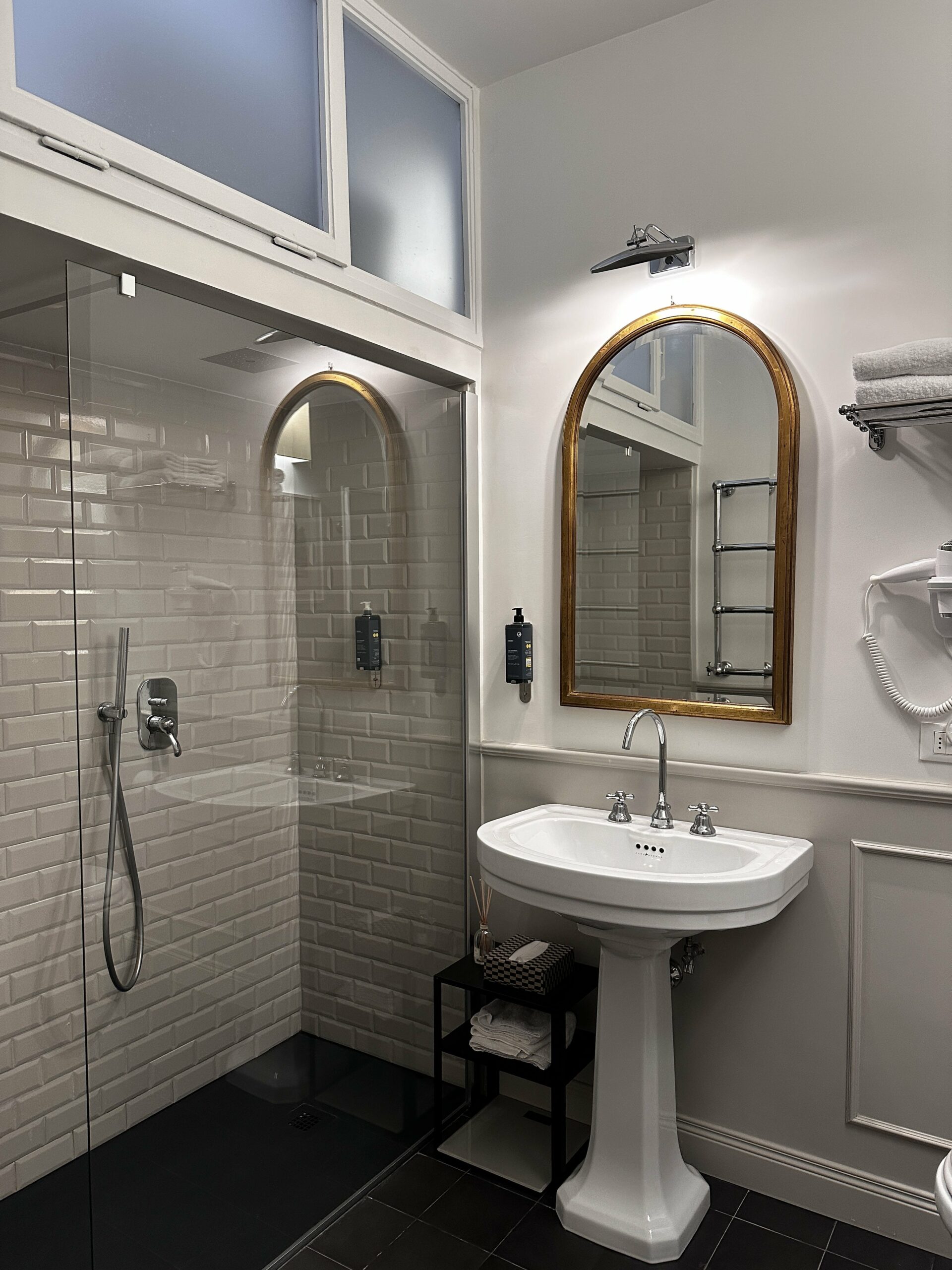 Grande attenzione è stata dedicata ai tessuti e ai materiali: lino, velluto e cotone naturale accompagnano gli spazi, rendendo ogni ambiente accogliente e raffinato. Per far vivere agli ospiti il vero sapore del passato, abbiamo inserito pezzi di antiquariato selezionati, come sedie, tavoli e lampade d’epoca, che dialogano armoniosamente con elementi contemporanei di design.