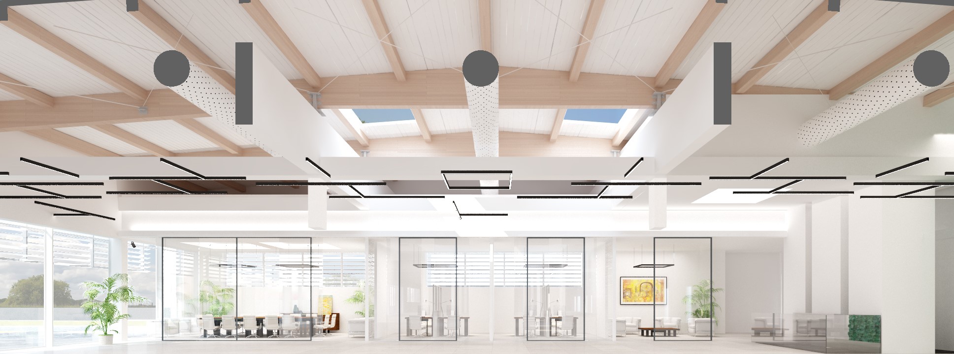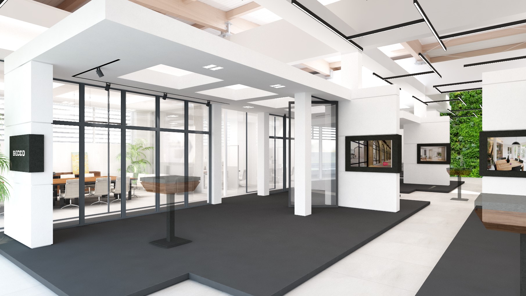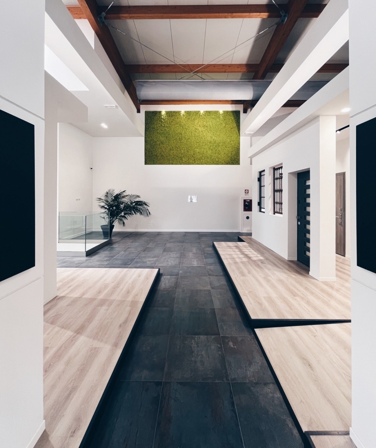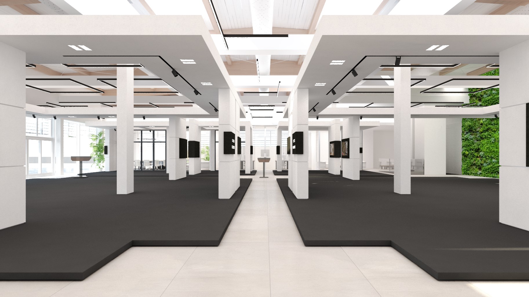 Abbiamo curato ogni dettaglio per massimizzare la resa estetica e funzionale. Questo ha richiesto un attento studio dei materiali, la selezione di idonei sistemi di controsoffittatura e, in particolare, un rigoroso studio illuminotecnico, essenziale per valorizzare i prodotti e conferire al polo espositivo un impatto visivo e professionale di alto livello.