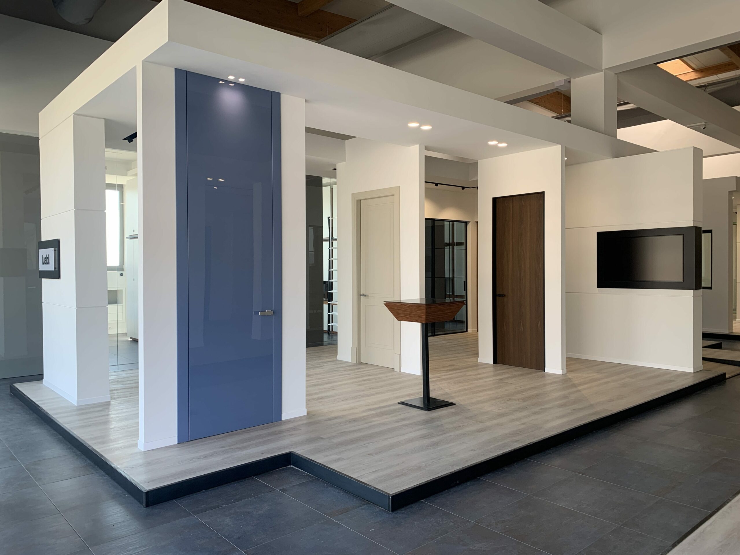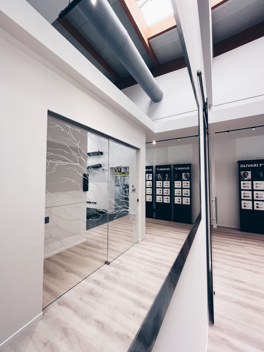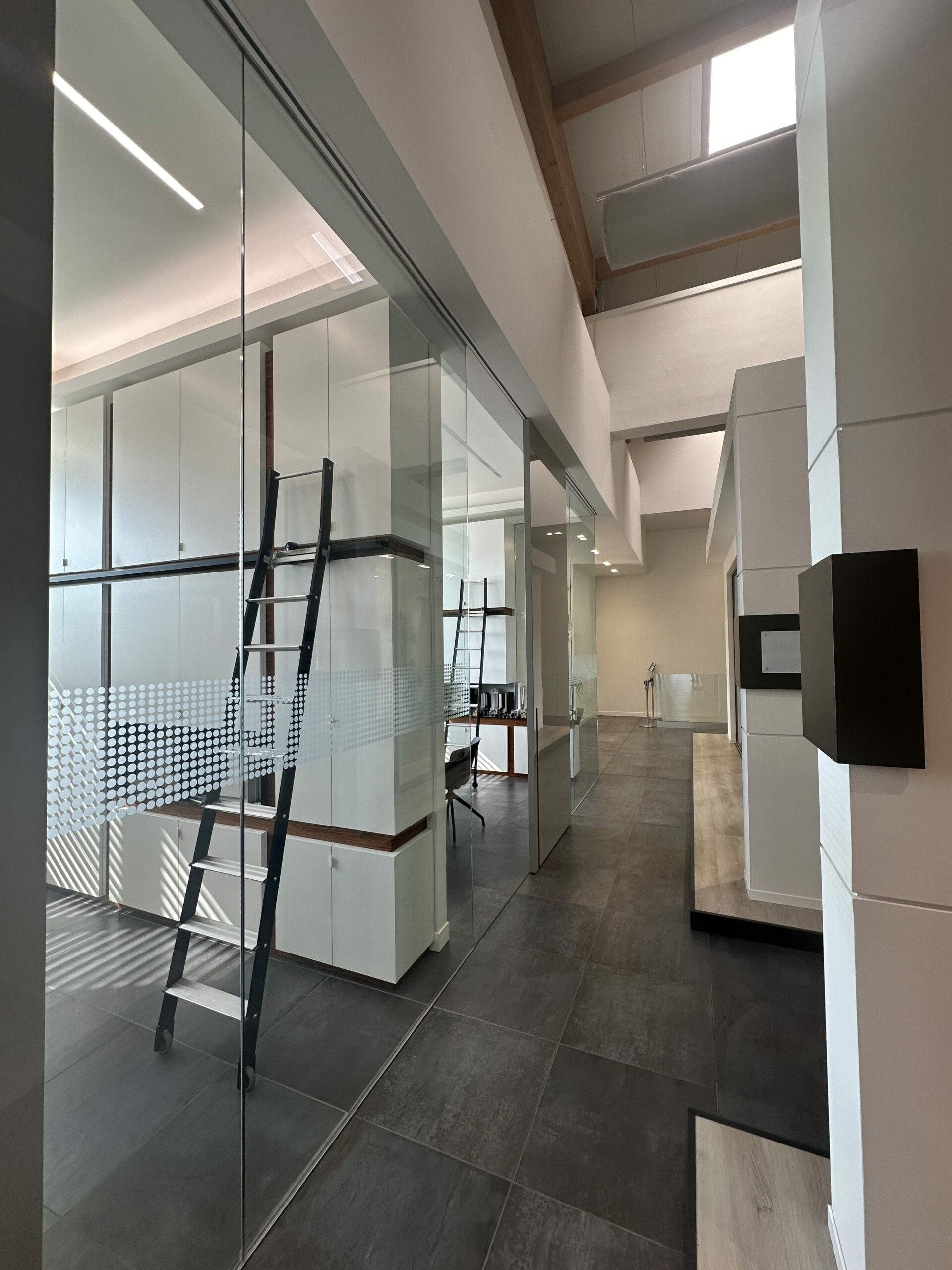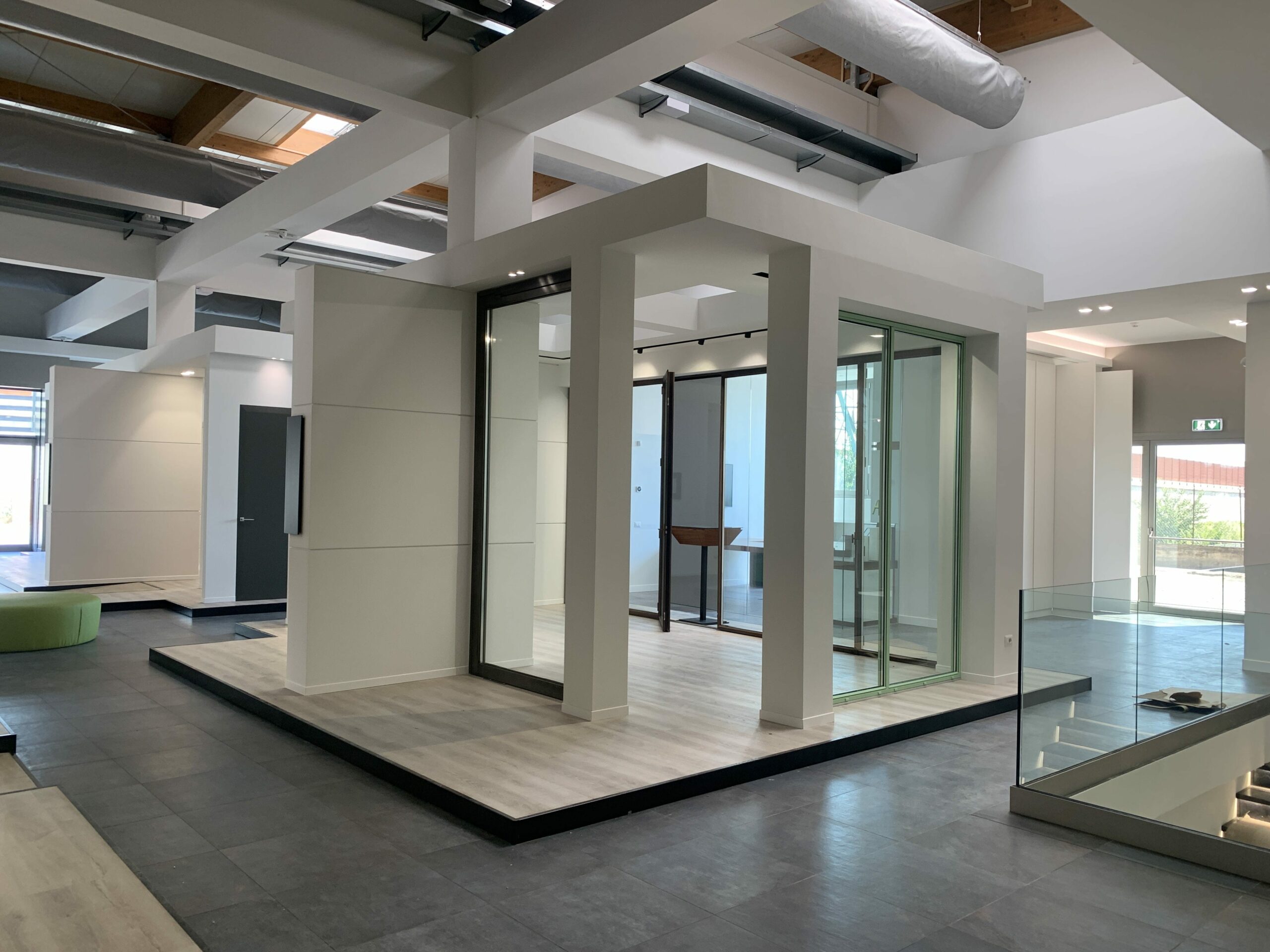 L’intervento è stato caratterizzato da due elementi chiave: all’esterno, l’installazione di una facciata continua in cristallo che garantisce modernità e massima trasparenza; all’interno, la creazione di isole espositive mirate, studiate per alloggiare in modo ottimale l’intera gamma di materiali richiesta dalla committenza.