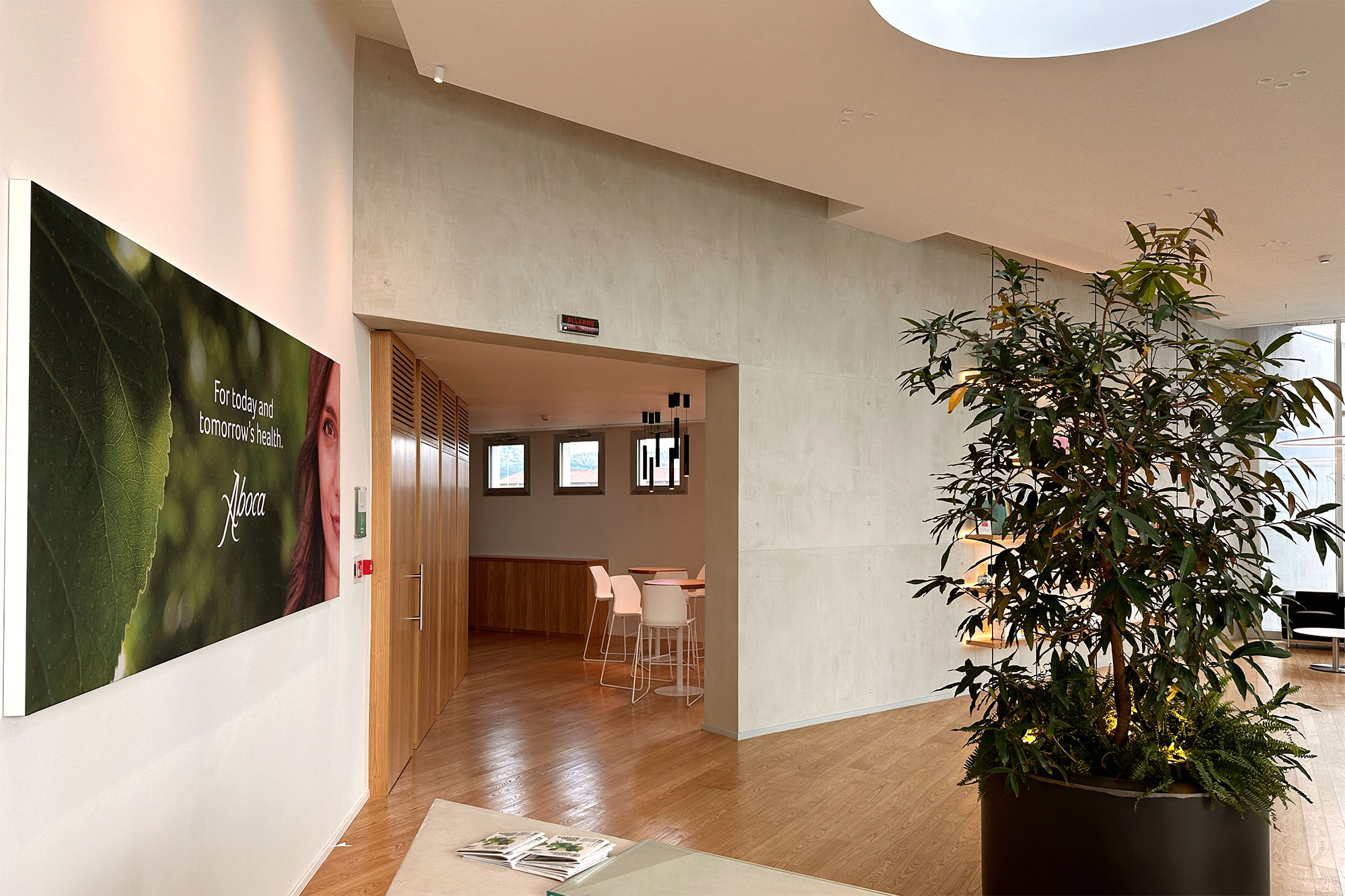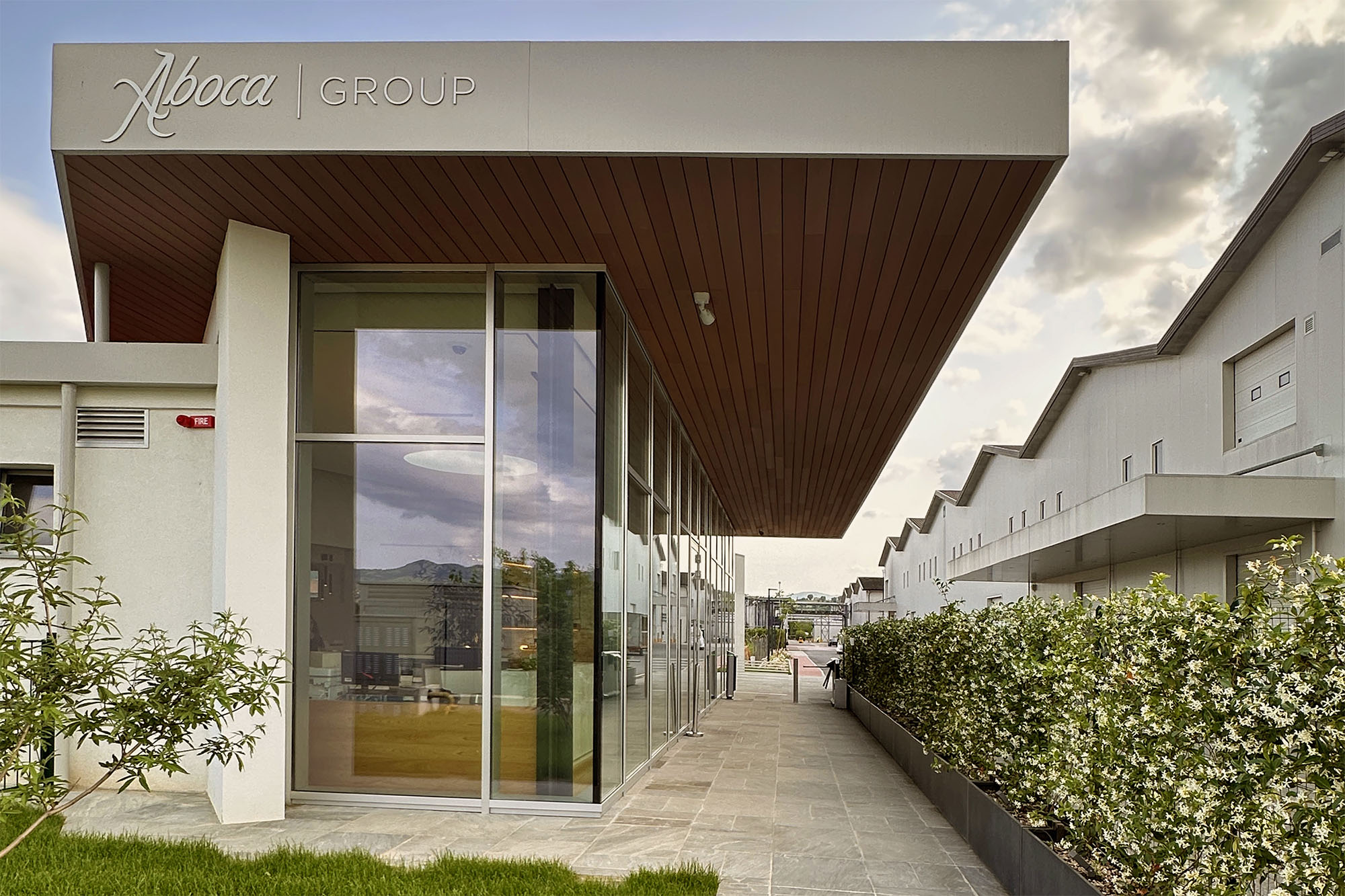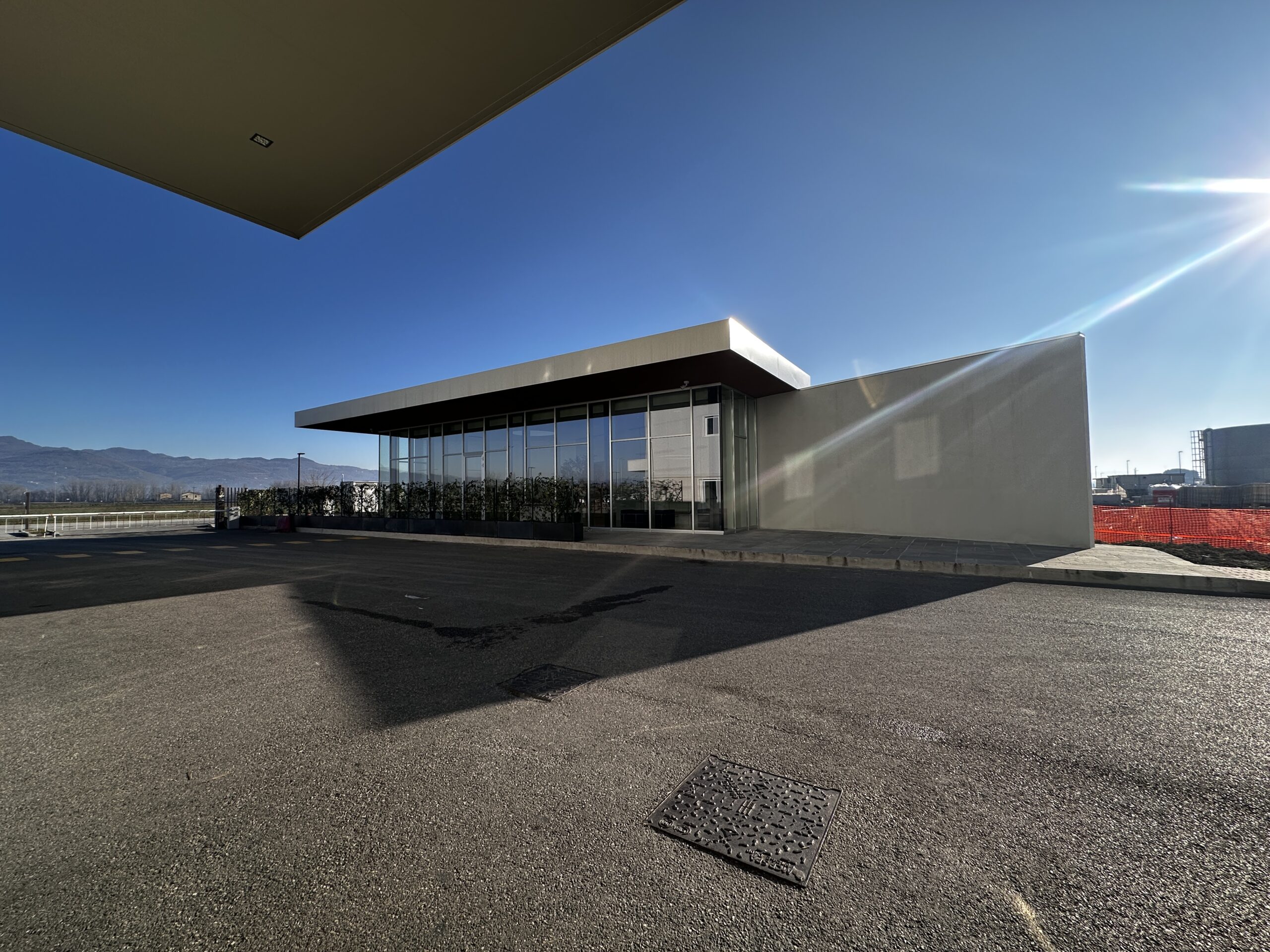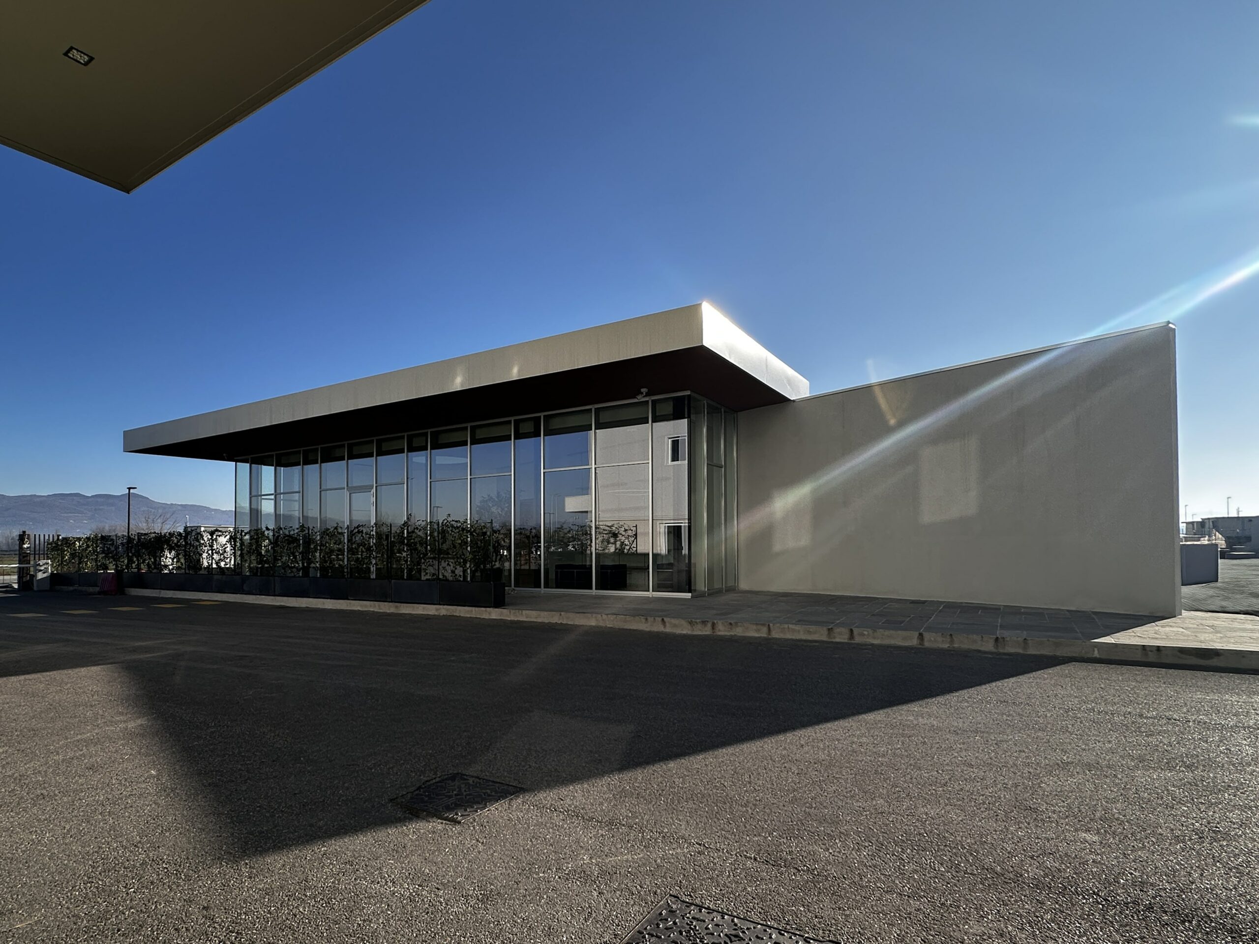 Questo edificio non è solo un posto di controllo, ma rappresenta anche un biglietto da visita moderno e funzionale per l’immagine aziendale di Aboca.