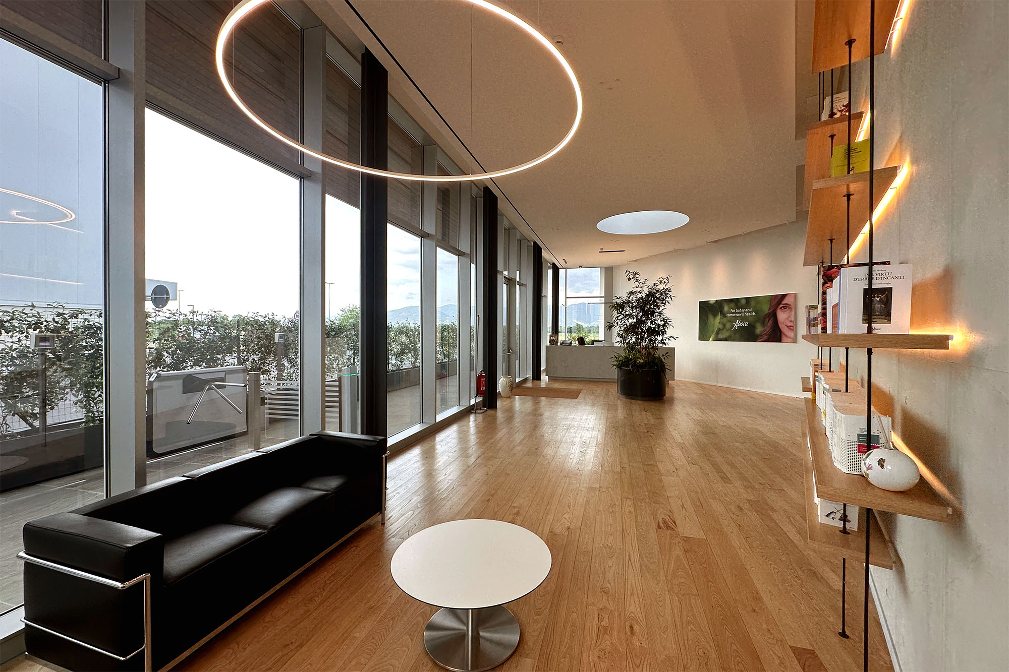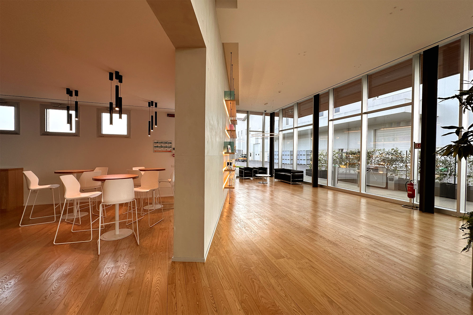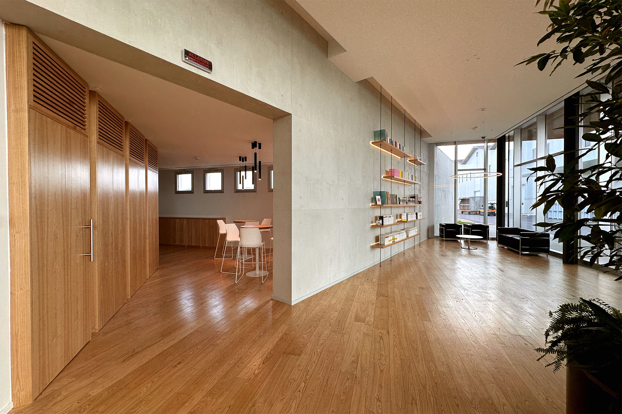 Gli spazi interni sono stati ottimizzati per l’efficienza operativa e il comfort degli utenti, predisponendo un’area accoglienza e registrazione dedicata alla gestione dei flussi di ingresso e un’area break come spazio di attesa confortevole a disposizione di visitatori e personale.