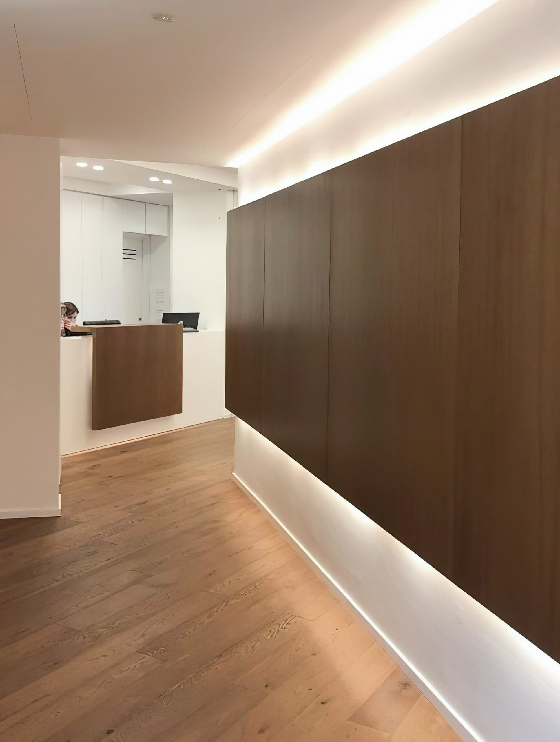 - Illuminazione Architettonica: Per enfatizzare la texture del legno e creare profondità, è stato implementato un sofisticato sistema di illuminazione radente. Fonti luminose a LED sono state strategicamente posizionate per irradiare luce dall’alto e dal basso, garantendo un’atmosfera serena e professionale.