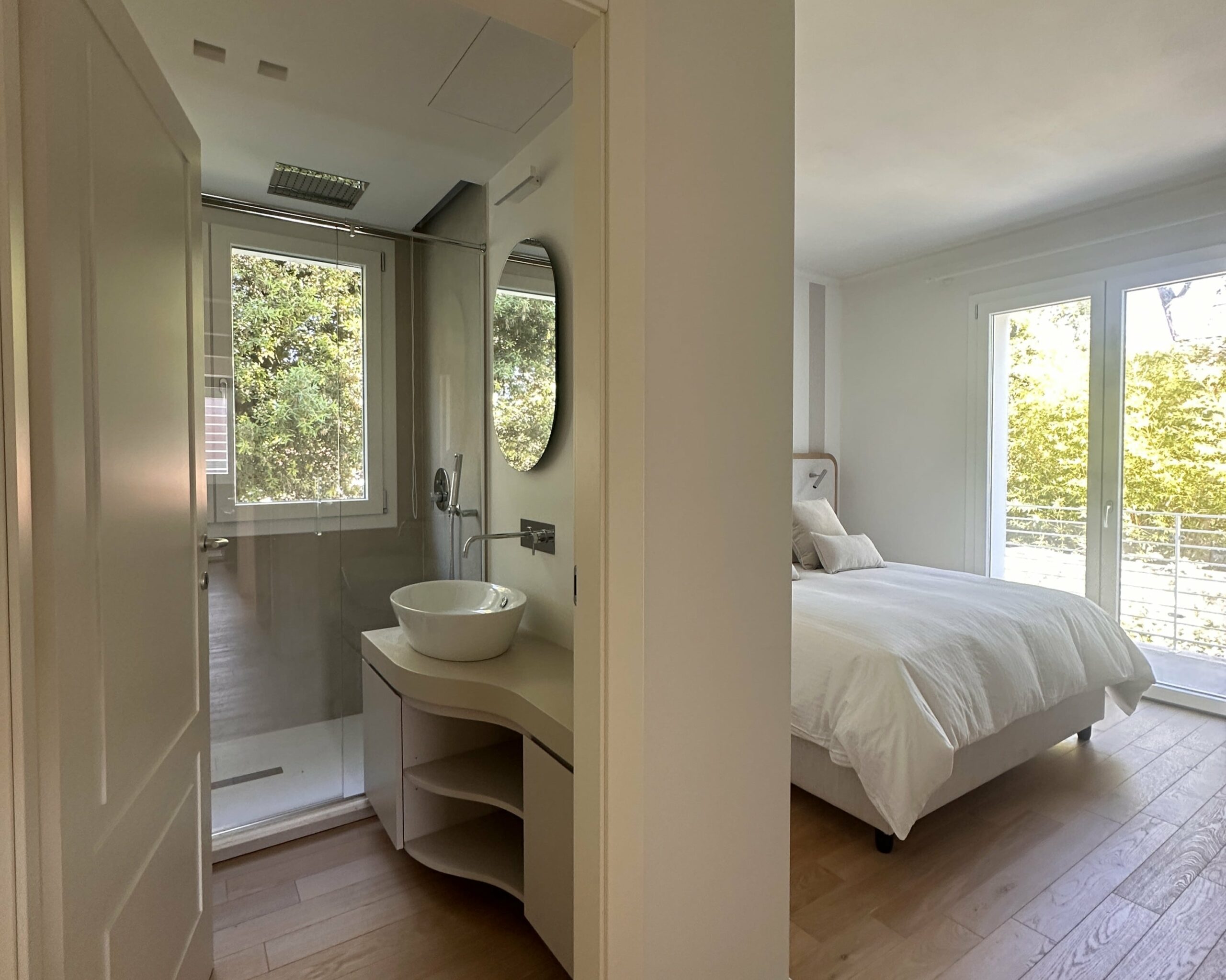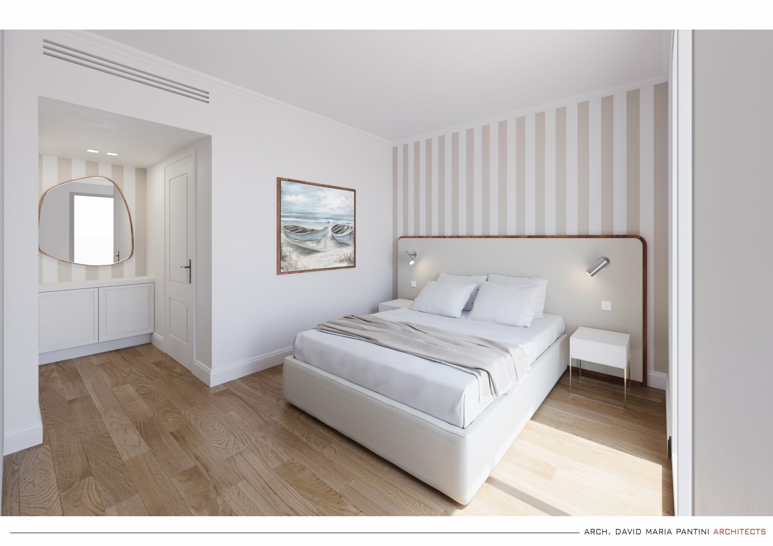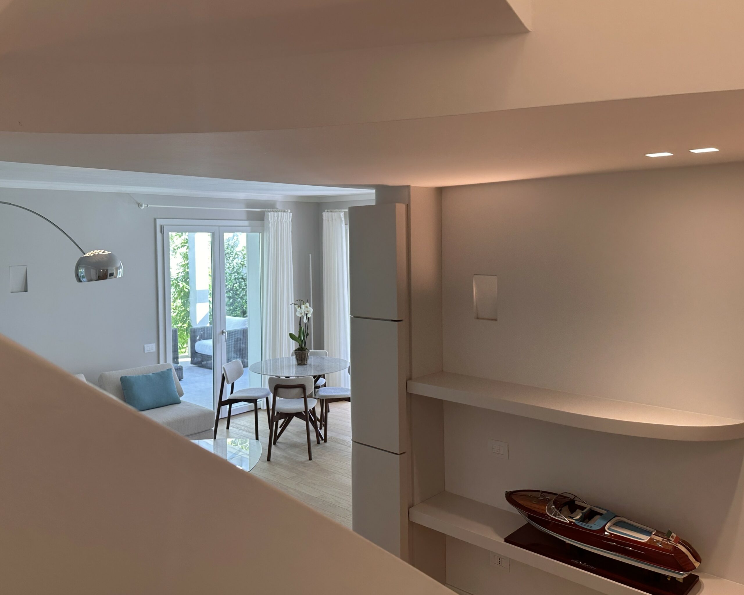 L’intervento ha rispettato la struttura esistente, trasformandola in una solida base su cui innestare un linguaggio elegante e attuale, in linea con le richieste della committenza, orientata alla futura rivendita. La ristrutturazione generale ha interessato sia gli esterni che gli interni, restituendo armonia architettonica all’intero complesso. Gli spazi sono stati ripensati con un design raffinato, arricchito da tocchi cromatici che ne sottolineano la vitalità senza mai eccedere.