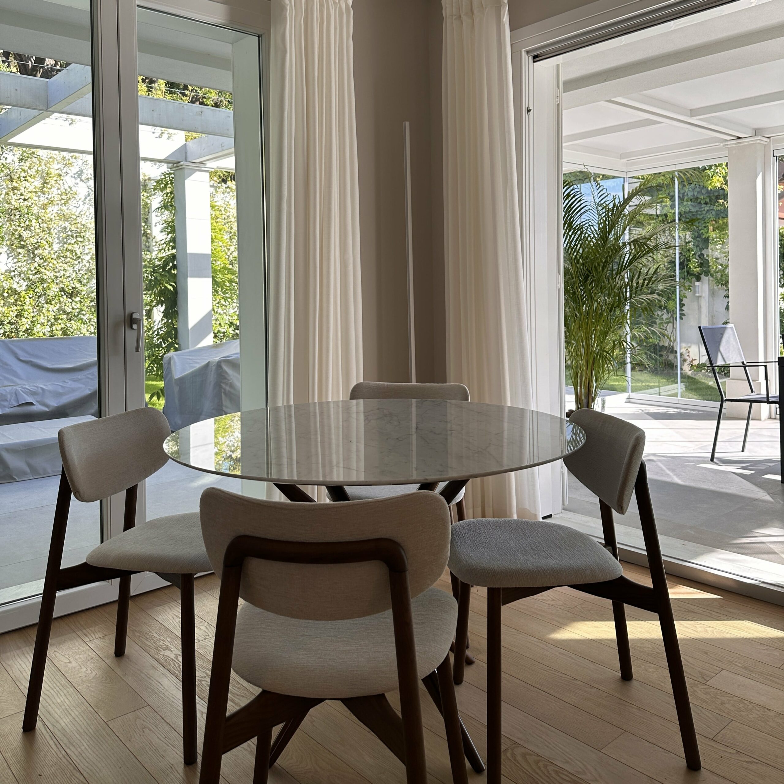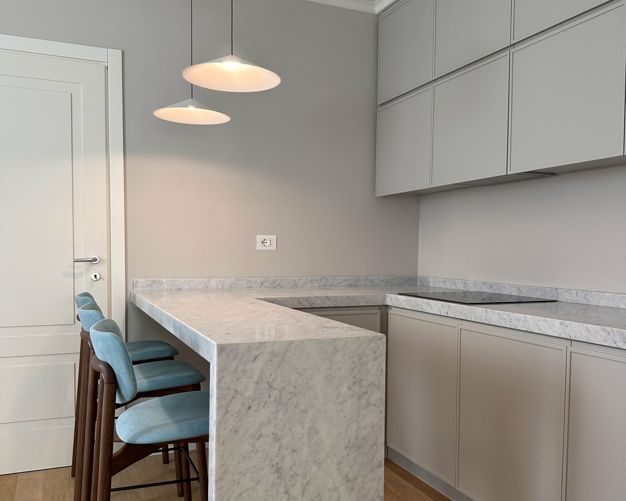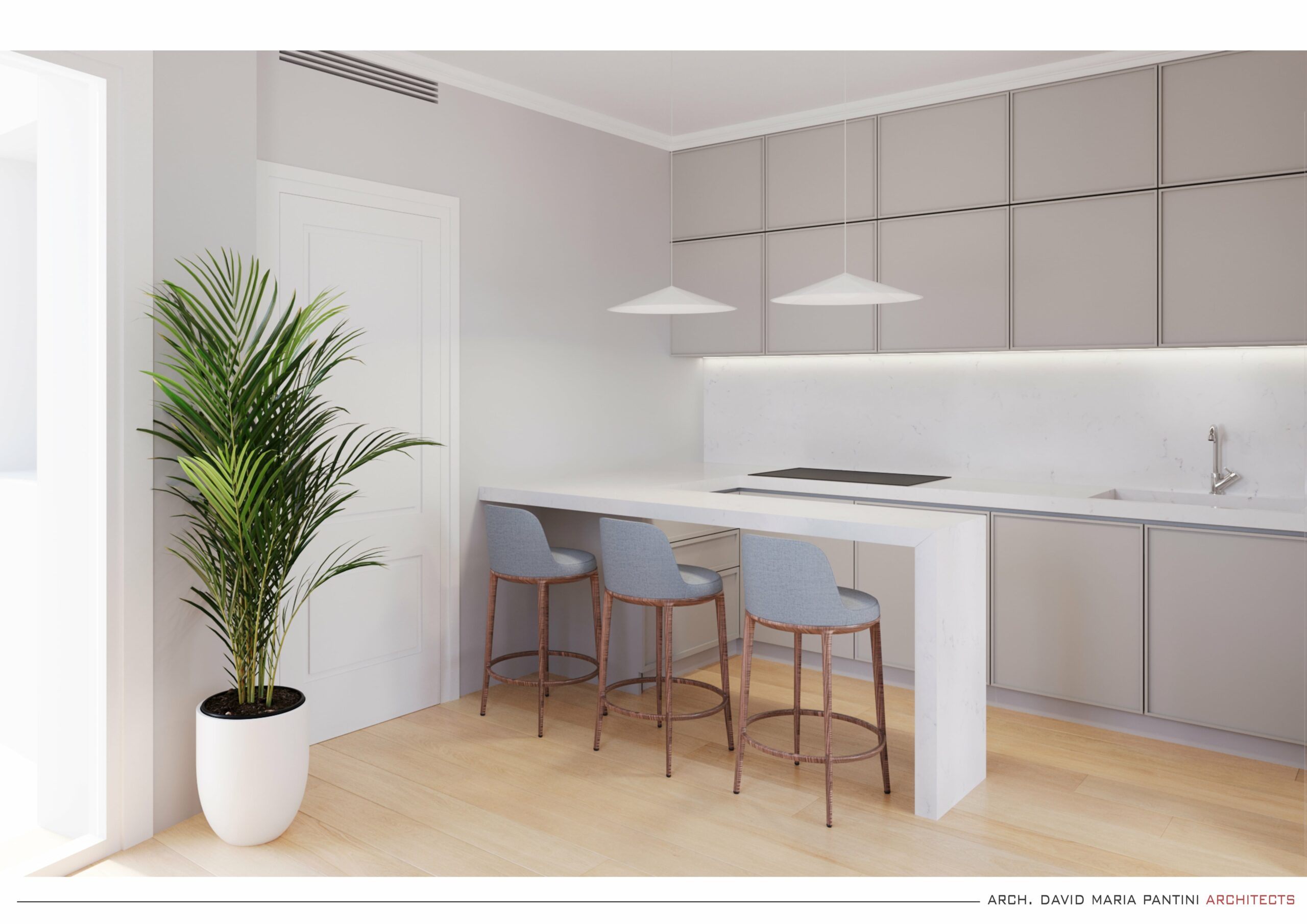 L’intervento ha rispettato la struttura esistente, trasformandola in una solida base su cui innestare un linguaggio elegante e attuale, in linea con le richieste della committenza, orientata alla futura rivendita. La ristrutturazione generale ha interessato sia gli esterni che gli interni, restituendo armonia architettonica all’intero complesso. Gli spazi sono stati ripensati con un design raffinato, arricchito da tocchi cromatici che ne sottolineano la vitalità senza mai eccedere.